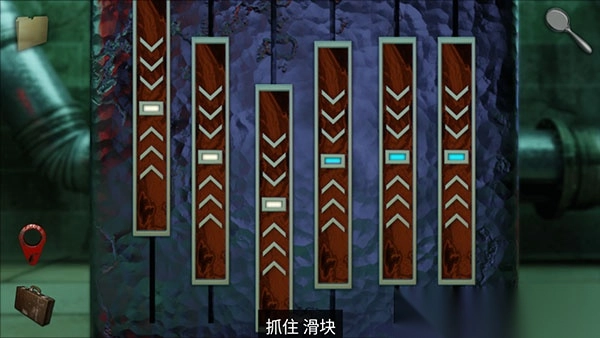 2、捡起金属球,滑动长条,直至所有可见的指示灯都变成黄色,如此便能获取相机以及一把钥匙。