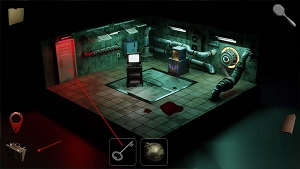 3、打开左下角的背包,用钥匙打开门,穿过走廊进入另一个房间。