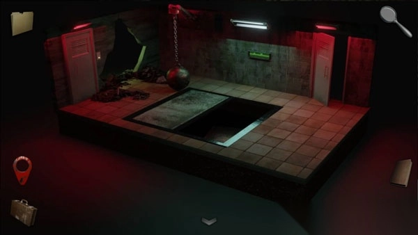 7、将球与链子放置在第二个房间的钩子上面,接着让金属球朝着墙壁摆动,以此来打造出一个“门”。
