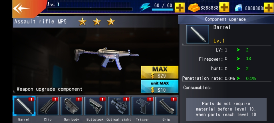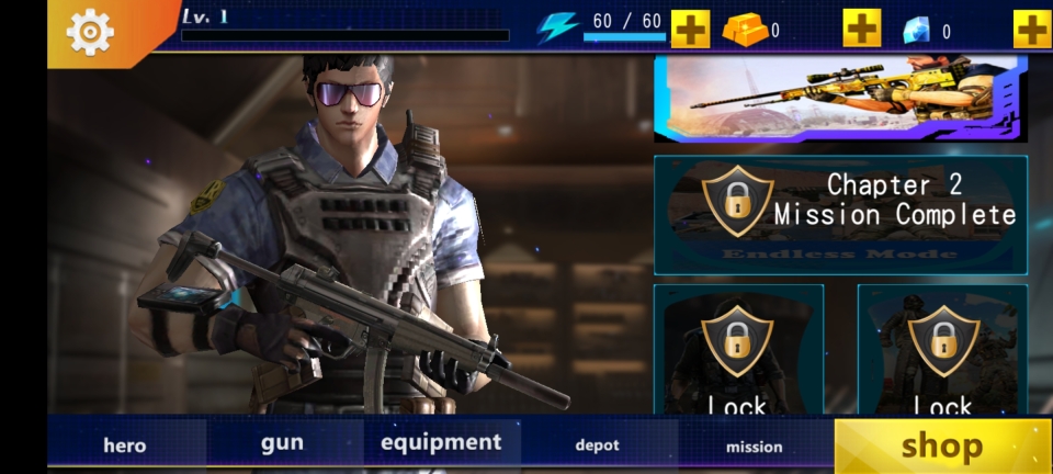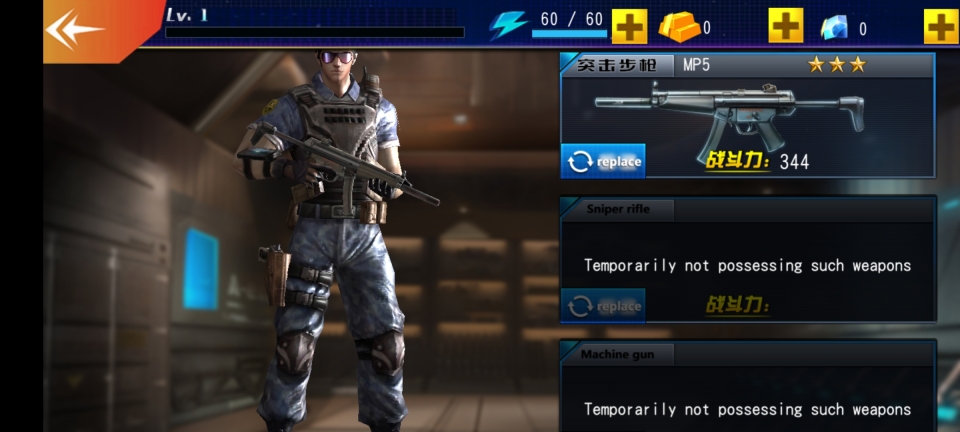 2、挑选关卡1,任务目标为消灭全部敌人,对一个敌人进行爆头操作,对一个敌人达成连击,点击【start】启动。