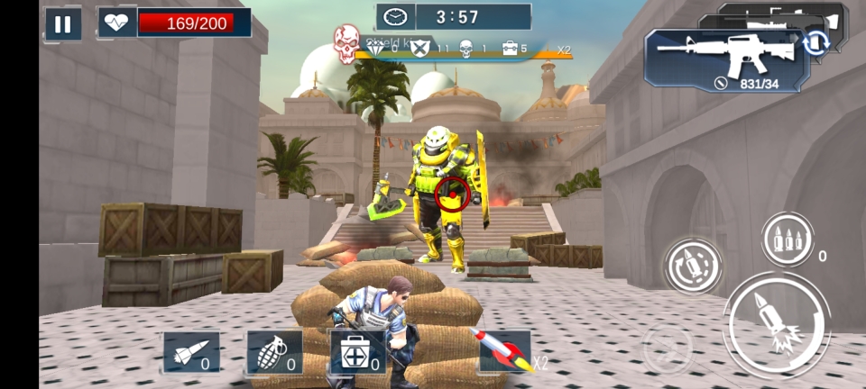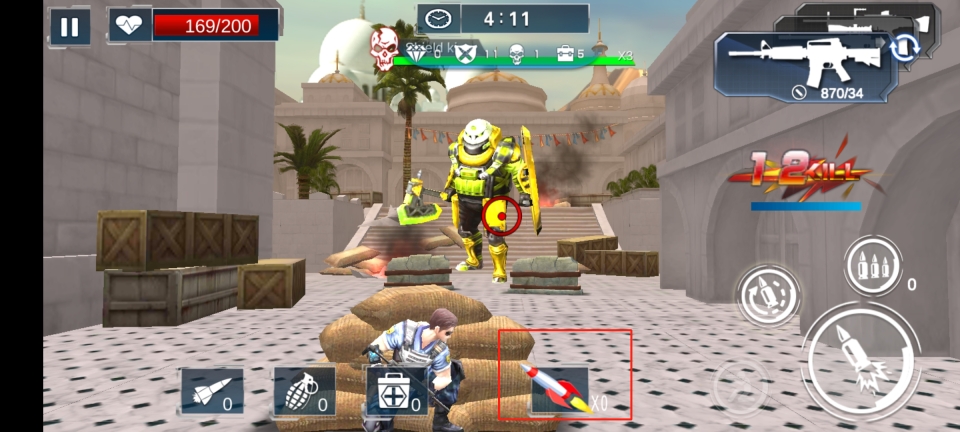 3、游戏操作很简单,左侧是控制人物的走位,右侧则是射击敌人,要注意掩蔽自己哦