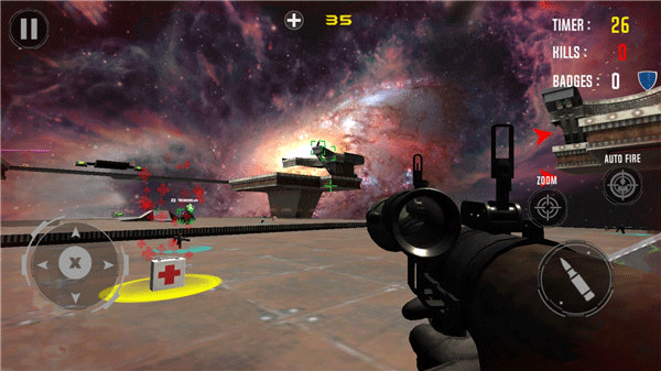 1、全新的科幻题材手机游戏,在游戏中展开我们刺激的射击之旅!