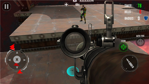 2、这款游戏的操作性颇强,在限定时间内,消灭的坏人数量越多,获得的金币也就越多,同时还设有排名机制。游戏通过3D空间感提升了难度,玩家需依据红色箭头来判断敌人所处位置,接着迅速瞄准敌人。射击方式既可以选择自动射击,也能够手动射击。