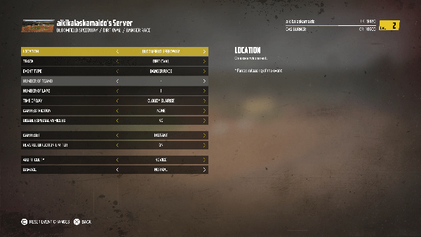 4、房间参数如下,赛道选最短的BLOOMFIELD SPEEDWAY →DIRTY OVAL