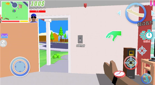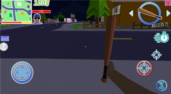 4、玩家可以控制角色在房间外面的世界中自由的探索,可以用各种工具袭击路人,比如木棒枪支弹药等