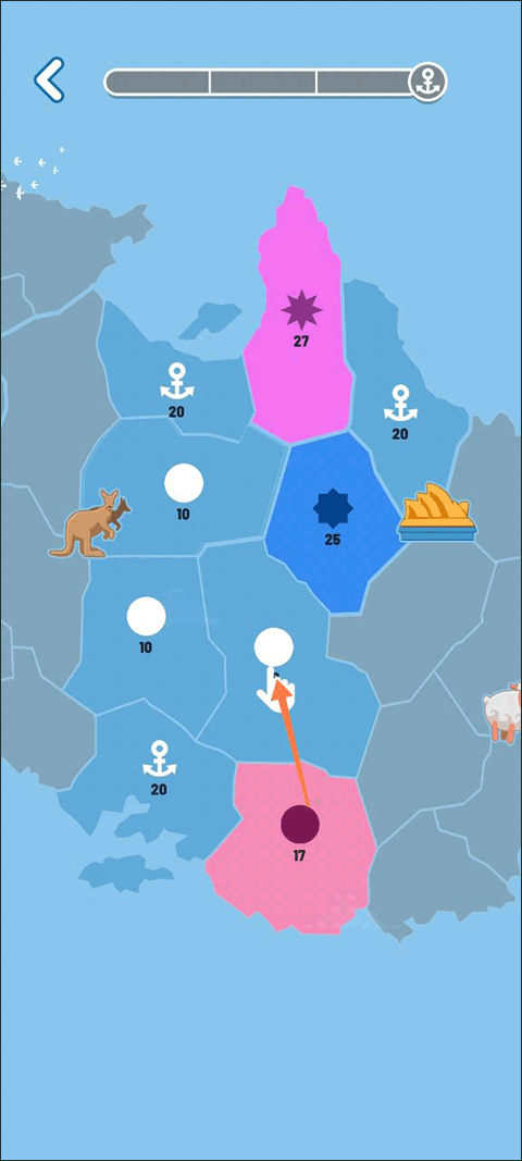 游戏开始后,我们会拥有一座小岛屿,岛上的数字表明该岛屿的人数。我们需要凭借自身人数众多的优势,去攻占其他岛屿,当整个地图都成为我们的领地时,即为胜利。此外,我们的各个岛屿之间还能通过联动的方式展开侵占行动。