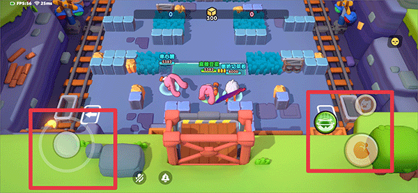 1、下载并进入游戏后,玩家通过左边轮盘操控角色的移动,右边为大按钮基础技能,小按钮为专属技能