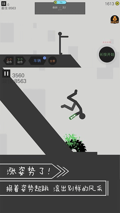 尽情翻滚吧,火柴人!通过更多的翻滚与碰撞去赢取积分吧!