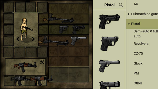 bag指书包与军用背包,eye表示夜视仪及战术护目镜。通过用手拖曳,将其放置到人物周边相应的方框之中,要是对应方框有误,所选物品便无法留存。注意:需在暗色部分放置背包之类物品来解锁贮存空间。