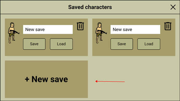 4、diy角色完成后,我们滑动之最上方“save”点击其中的“create new”可快速保存当前设置