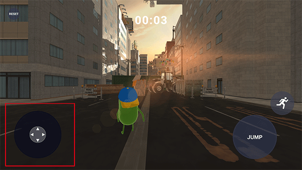 1、在左侧能够操控小人实现前后左右方向的移动。