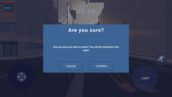 5、如果对闯关时间不满意的话,可以先点击上方的rest,再选择confirm就能重新开始游戏。