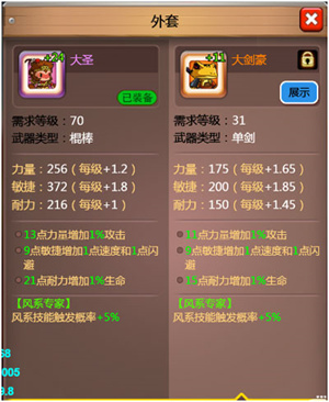 (2)无影,体系专家,敏捷最高的绿色外套,11的转换比9.2成长,速度闪避首选,由于初期大家速度都不快,初级天赋火盾pk中效果还不错,爬塔必备技能武神也是体系。
