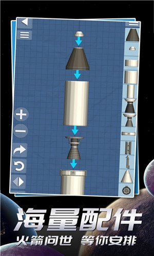 海量配件随你搭配,通过试飞调整零件,打造自己独一无二的火箭。开放月球、水星、火星等多个行星,等比例缩放,当你来探索!
