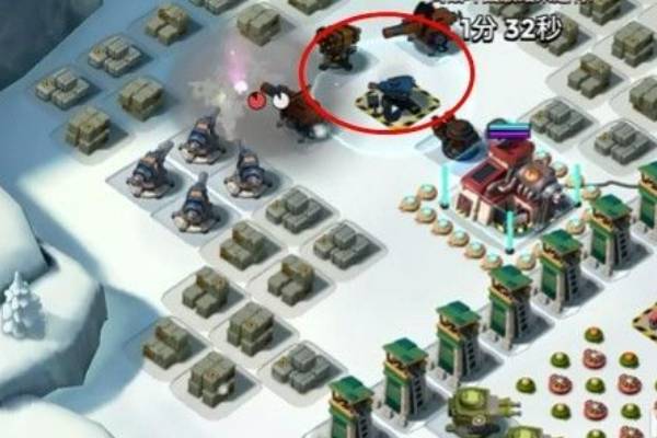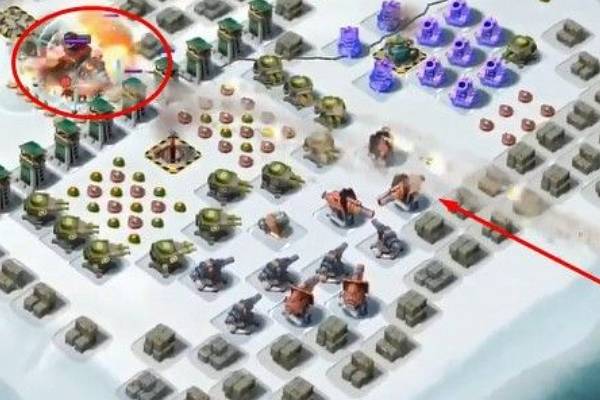 既然是躲角阵型,那么阵型的中心当然主要的是靠向角落的啦,大本营的主要是靠向后面一点的,周围是一些防御设施,之后就是各类建筑物,在建筑物之间又是一些地雷等等,效果还是不错的哦,玩家们可以尝试一下。