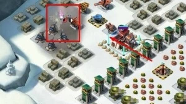 进攻路线上来说,坦克走中路一定不可取,需要对抗4个加农和6个狙击塔。最好是走上路。对抗1个狙击塔和2个加农,这三个建筑是不能被同时冻住的。废了力清理了之后,后面仍然有两个狙击塔保护,防坦克只能做到这了。