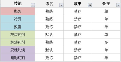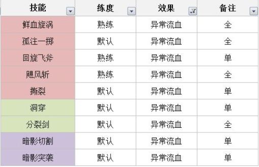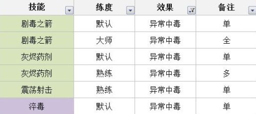 还有技能是带附加效果:中毒、流血、燃烧,这些一般称之为异常状态。