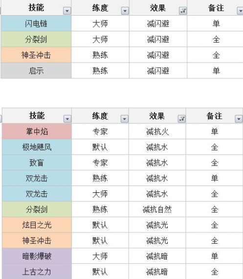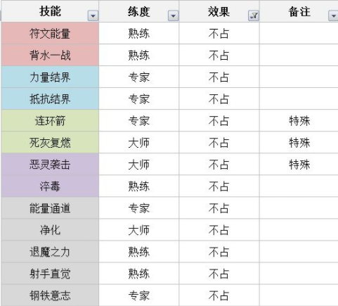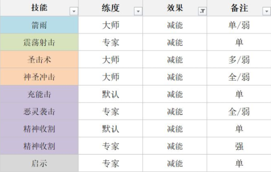 练度等同于技能的阶级,初始状态即为技能默认情况,后续能够升阶,依次为熟练——专家——大师。升阶途径为在女巫小屋抽取卡包,获取一定数量的技能金卡后实现升阶,或者直接融合技能金卡,还能依据技能所需的元素精华直接合成技能金卡,通常会额外获得2张随机技能金卡。至于上表提及的备注,可详细查看技能介绍,此处便不再赘述。