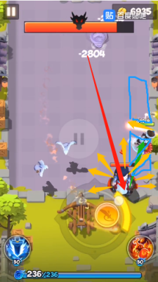 2、如果发现直接跑过去会被雷龙摸一下,那就在图中主角的位置停顿一下(最好是面向墙壁跑,这样子可以让主角位置不变,同时不需要松开屏幕,如果送开屏幕,马上再接着跑的时候,容易在刚触摸到屏幕的时候有一个错误的位移),等雷龙过去之后,再立刻向最上边的蓝色区域跑