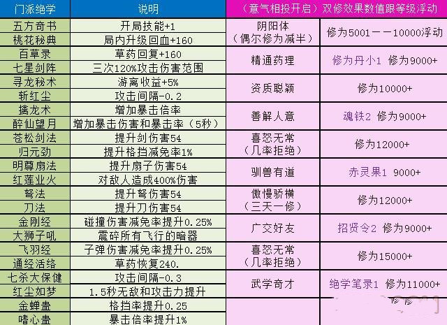 3、功能性双修【武当】修为丹1 【丐帮】魂铁2 【明教】赤灵果1【少林】招贤令2 【锦衣卫】绝学笔录1