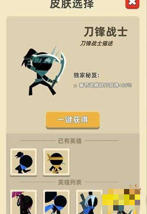 当前游戏内可获取的皮肤分为两类。一类是关卡赠送的皮肤,包含阿宅与黄头巾;另一类是需氪金购买的皮肤,有伞女、独孤剑、风清扬以及刀锋战士。阿宅作为免费的初始人物,黄头巾在通关关卡后能免费获取,其余几种皮肤则需花费约30元才能入手。
