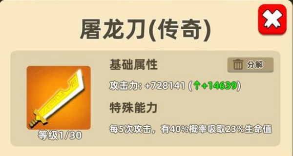 使用技巧:需要主动进攻才会对敌人造成全屏伤害,推图的时候对单体血量比较多的BOSS有点力不从心,打血量厚的怪物建议触发金钟再去进攻触发。