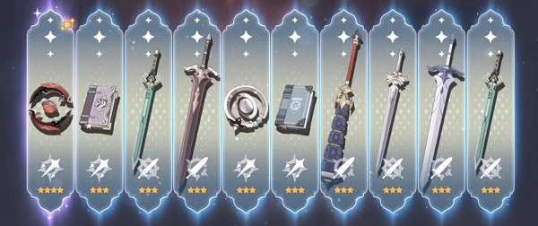 我该抽什么?排除脸黑的情况,假设我们在这次活动中抽到了所有奖品,那我们该保留哪些呢?A级的2把4星武器其实并不算稀有,可以通过在游戏内收集素材打造获得,而属性也劣于卡池里抽到的4星武器。由于存在十连保底,即使是无氪玩家,前期也会在抽老婆/老公的过程中获得相当多的4星武器。