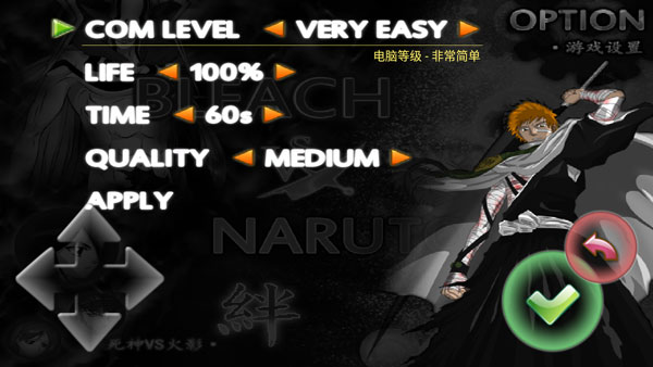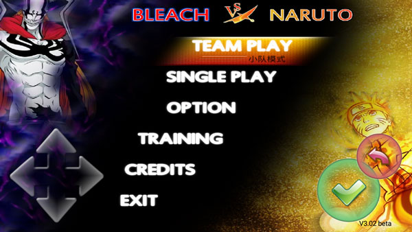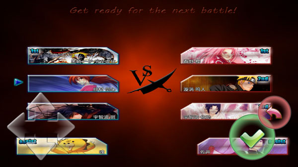 1、打开死神vs火影900人物版,点击绿色勾按钮;