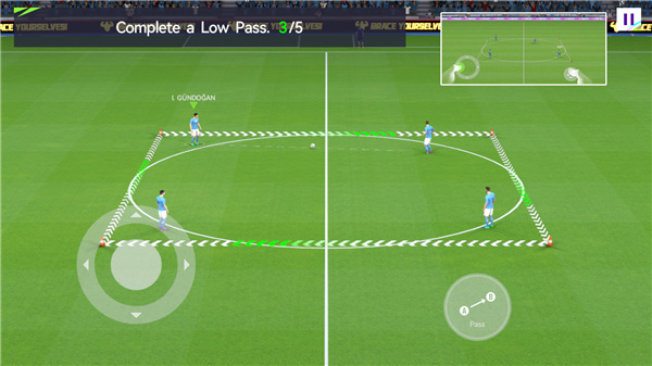 3、在标准的11v11足球比赛设定的游戏里,你能够对每一个角色进行单独操控,依靠持续的团队配合来达成进球,进而赢得比赛。
