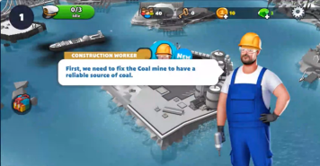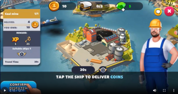 2、点击按键,让船出发去煤炭加工厂。