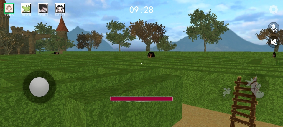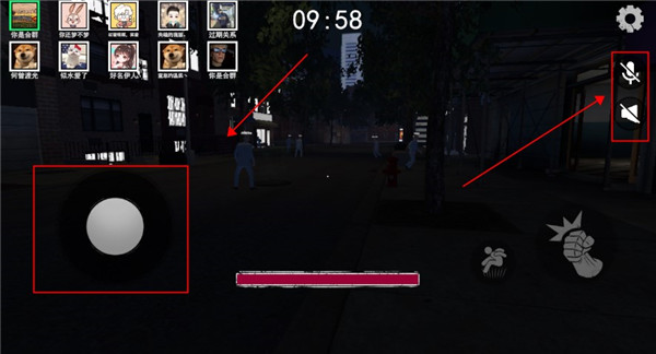 4、左边摇杆可以控制角色的移动,右边可以打开语音和麦克风和队友进行交流;