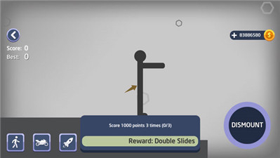 3、长按左下角的DISMOUNT,即可控制火柴人行动。