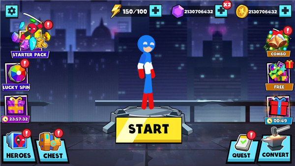 1. 在本站下载《超级火柴人英雄战斗》,选择“start”开启游戏。