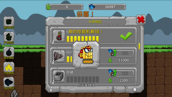 游戏的目标是探索地底世界,获取并贩卖地底的稀有资源,通过不断重复这一过程来改装升级你的挖掘机。