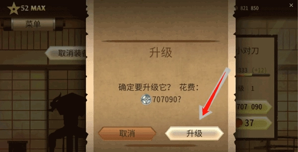 2、然后你会看到大小对刀的装备,选择升级下面那个选项。