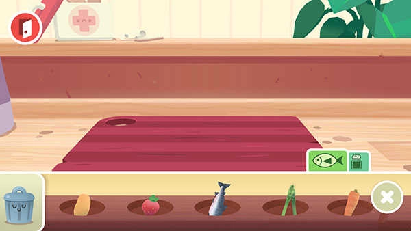 - 问候顾客,然后前往冰箱看看你所有新鲜食材。选择大米、金枪鱼、鳄梨、芦笋、鱿鱼、鲑鱼、辣椒、意大利腊肠、小萝卜、甘蔗(不开玩笑!)、姜、土豆、豆腐、虾等等材料。如果你更愿意选择蔬菜,可以切换成素食设置!
