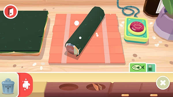 3、模拟各种有趣的厨房场景,使用特色的道具,能够很快的完成寿司的制作。