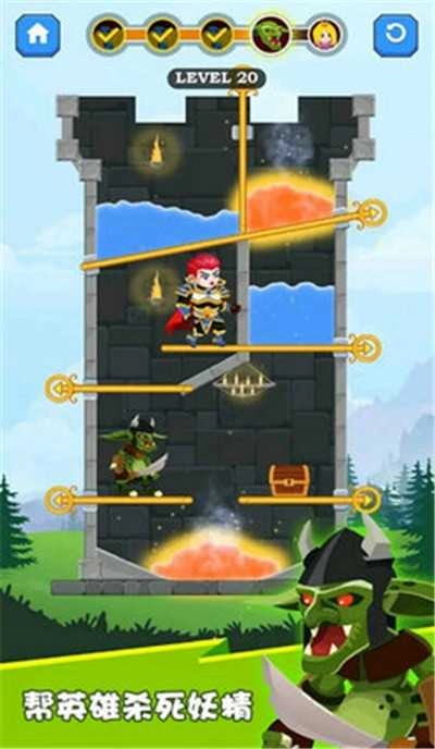 3、在游戏里凭借自身的智慧完成关卡,提升角色的属性后勇士就能持续战斗。