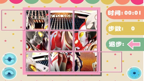 2、玩家需通过思考将奥特曼图片的碎片拼凑成一张完整的图片,以此来通过关卡。