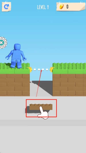 2、搭建稳固桥梁:先观察地形存在的缺口,再把乐高积木拖拽到对应的位置,将它们拼接起来形成稳固的桥梁,以此保证角色能够安全通过。