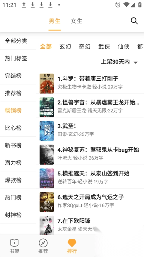 2、排行榜单每日更新,涵盖全网热门小说。若想知晓近期哪些书籍最受青睐,点击进来便一目了然。