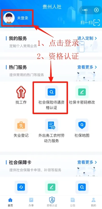 2. 在“贵州人社”APP上完成注册与登录;