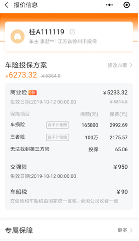 好车主目前支持9座以下(含9座)个人非营业客车(即家庭自用车)的车险报价及投保。