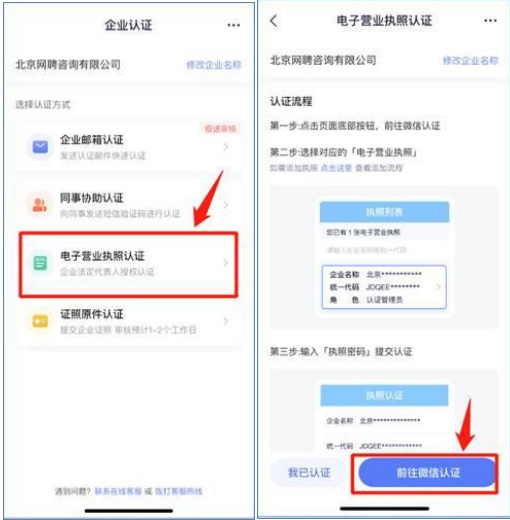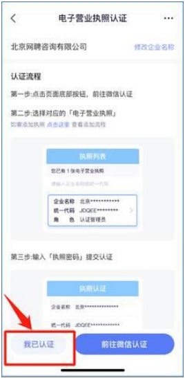智联招聘企业电子营业执照认证方式