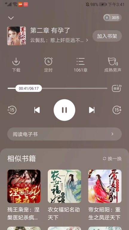 6、要是看书看累了,我们还能开启听书模式,去体验别样的感觉。