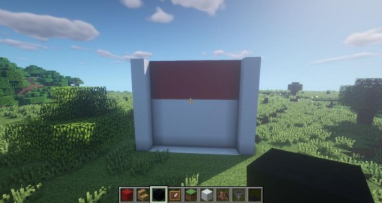 然后在刚才的白色混凝土上方,砌上红色混凝土,把上方的空余处填满。