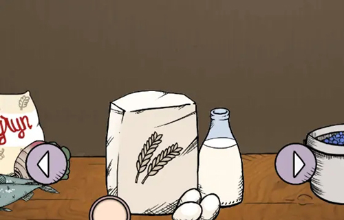 3、购置好蛋糕所需材料后回到家中,径直前往厨房,点击厨房右侧的橱柜,随即会弹出材料页面。