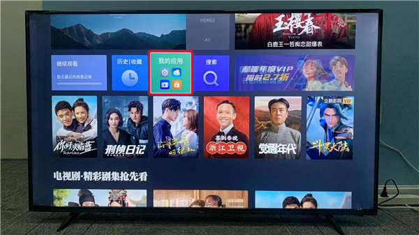 1、在电脑上连接一个U盘,好在本站下载的当贝市场安装包,拷贝到U盘将U盘插到TCL电视的USB接口,在电视主页找到【我的应用】;