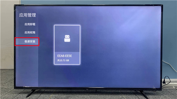 3、依次点击【应用管理】-【极速安装】,随后选中右侧的U盘文件夹。