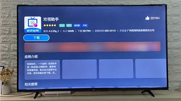 3、完成【欢视助手】的安装后,在欢视助手内搜索并安装【电视应用管家】。